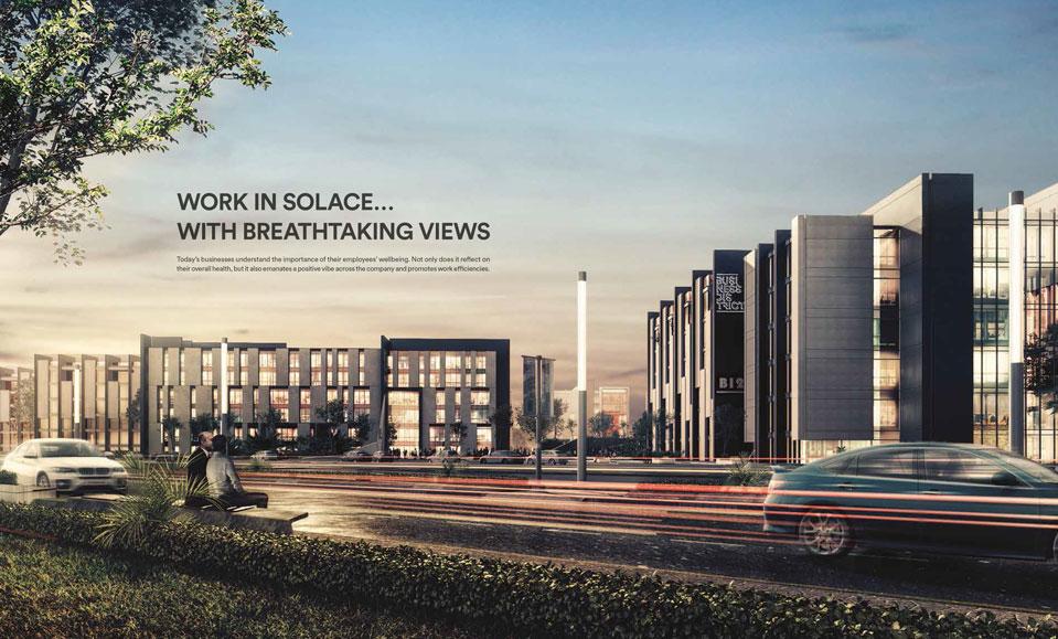 مساحات إدارية صغيرة للبيع مميزة في كايرو بيزنس بارك ، 40 بناية في تسعة طرازات فريدة تختلف في الطول من ثلاث ل ست طوابق ، لكل منها مدخل خاص للسيارات من الطابق السفلي.
